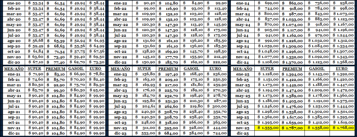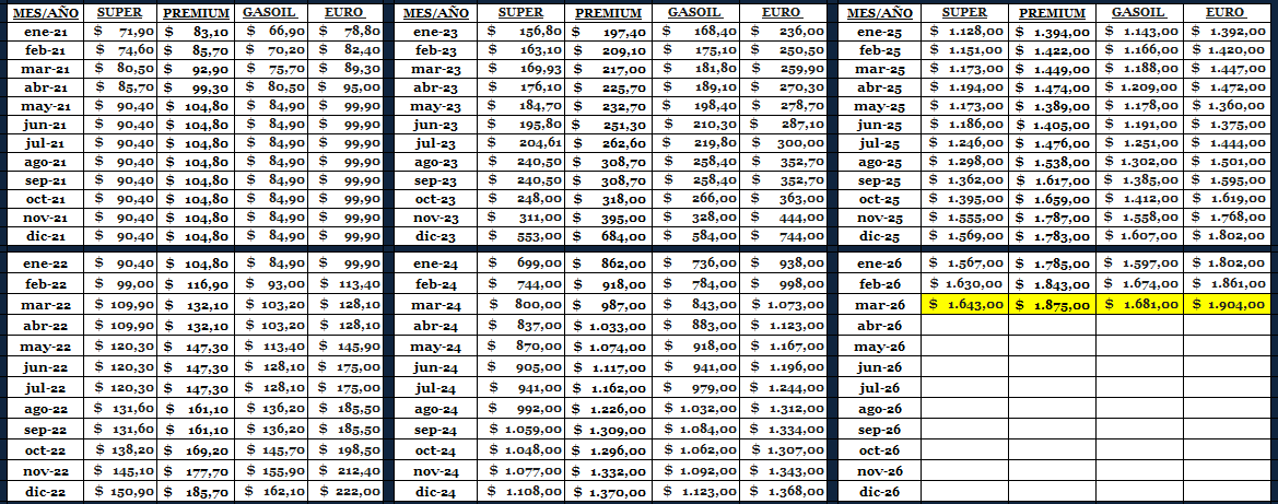 PRECIOS DE LOS COMBUSTIBLES YPF - OPESSA DE CAPITAL FEDERAL